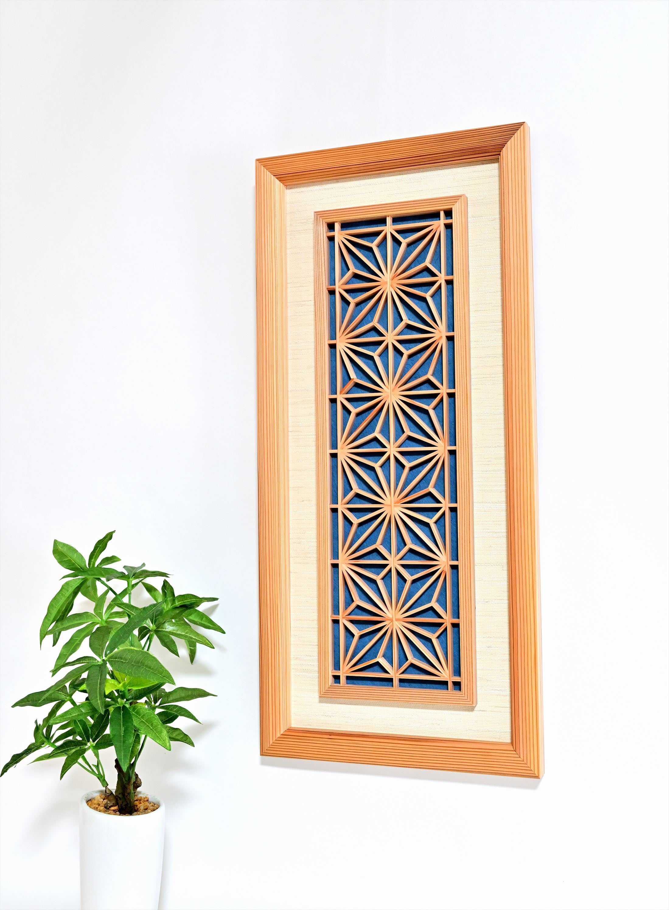 組子と和紙のウォールデコ 【角麻 藍色 縦】