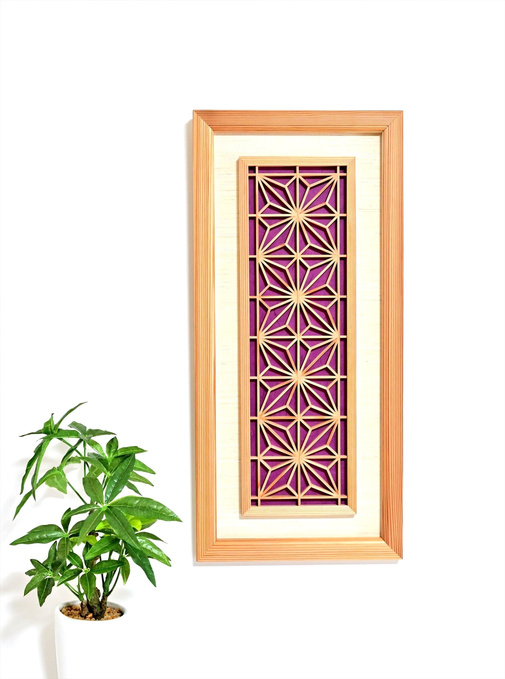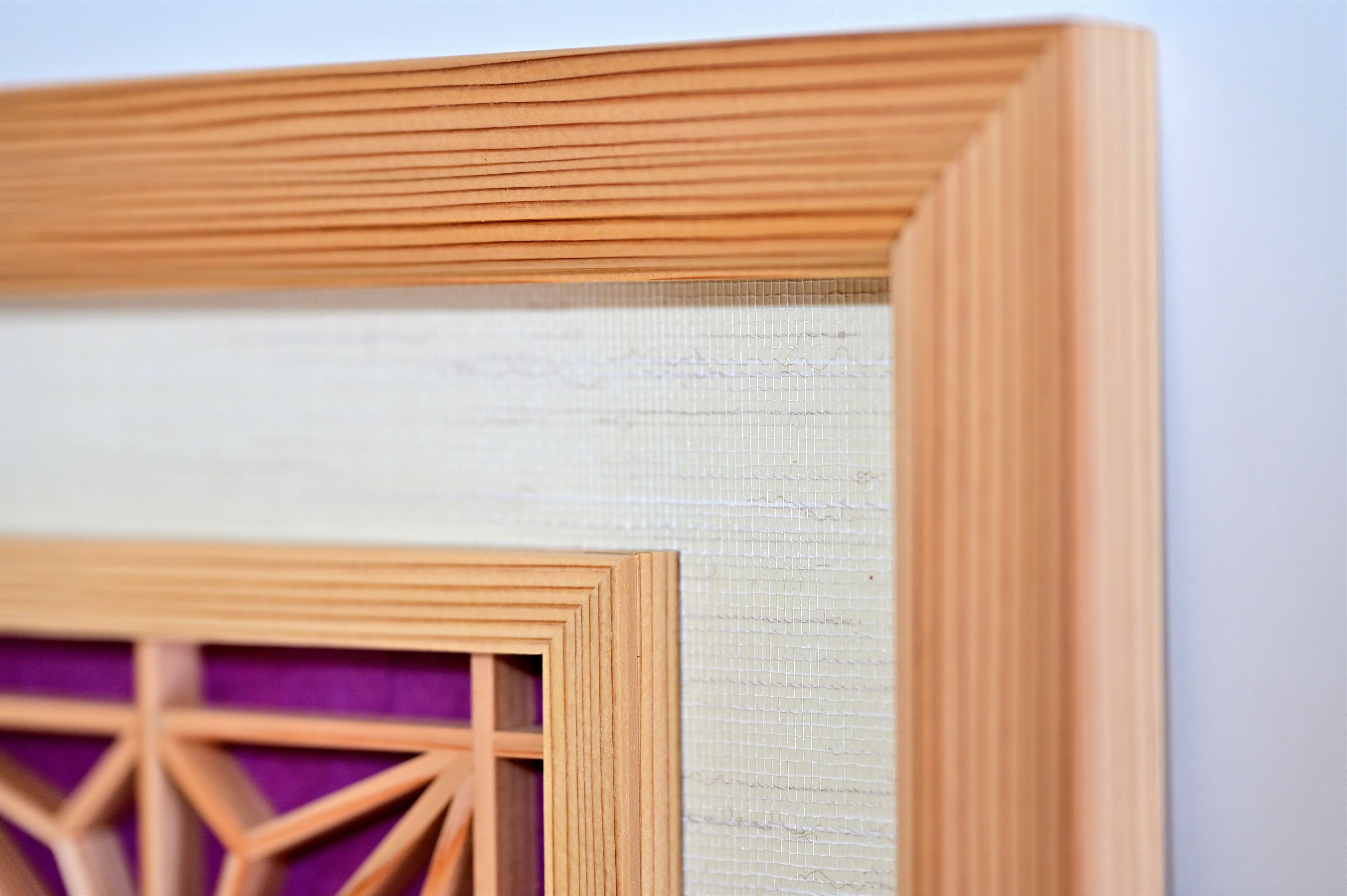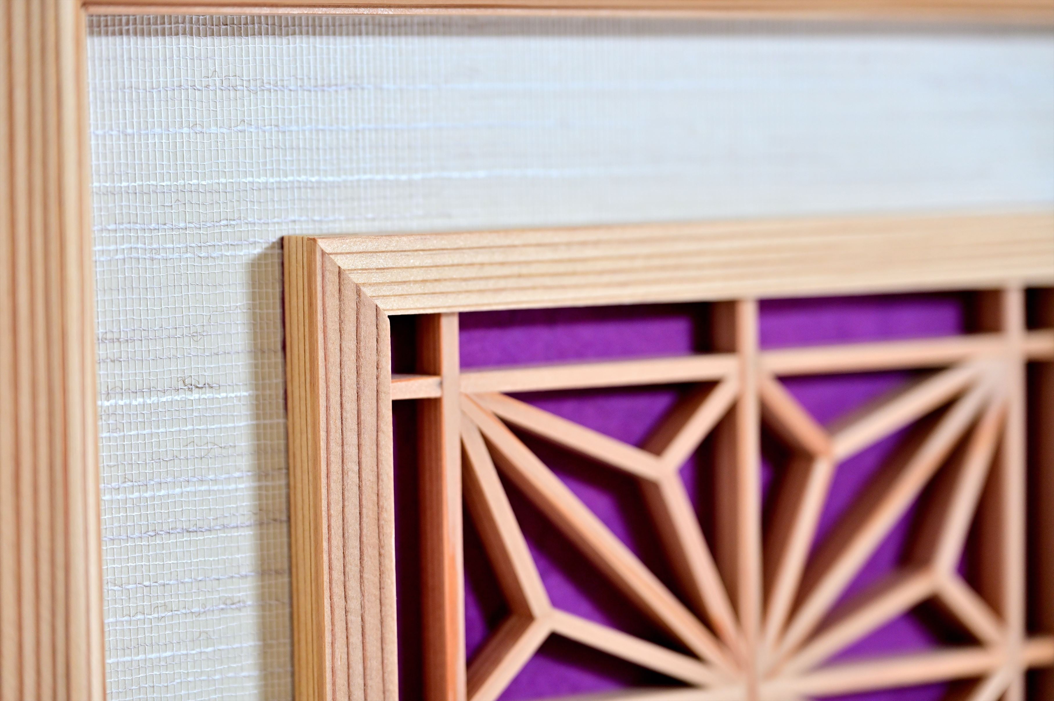 組子と和紙のウォールデコ 【角麻 紫色 縦】