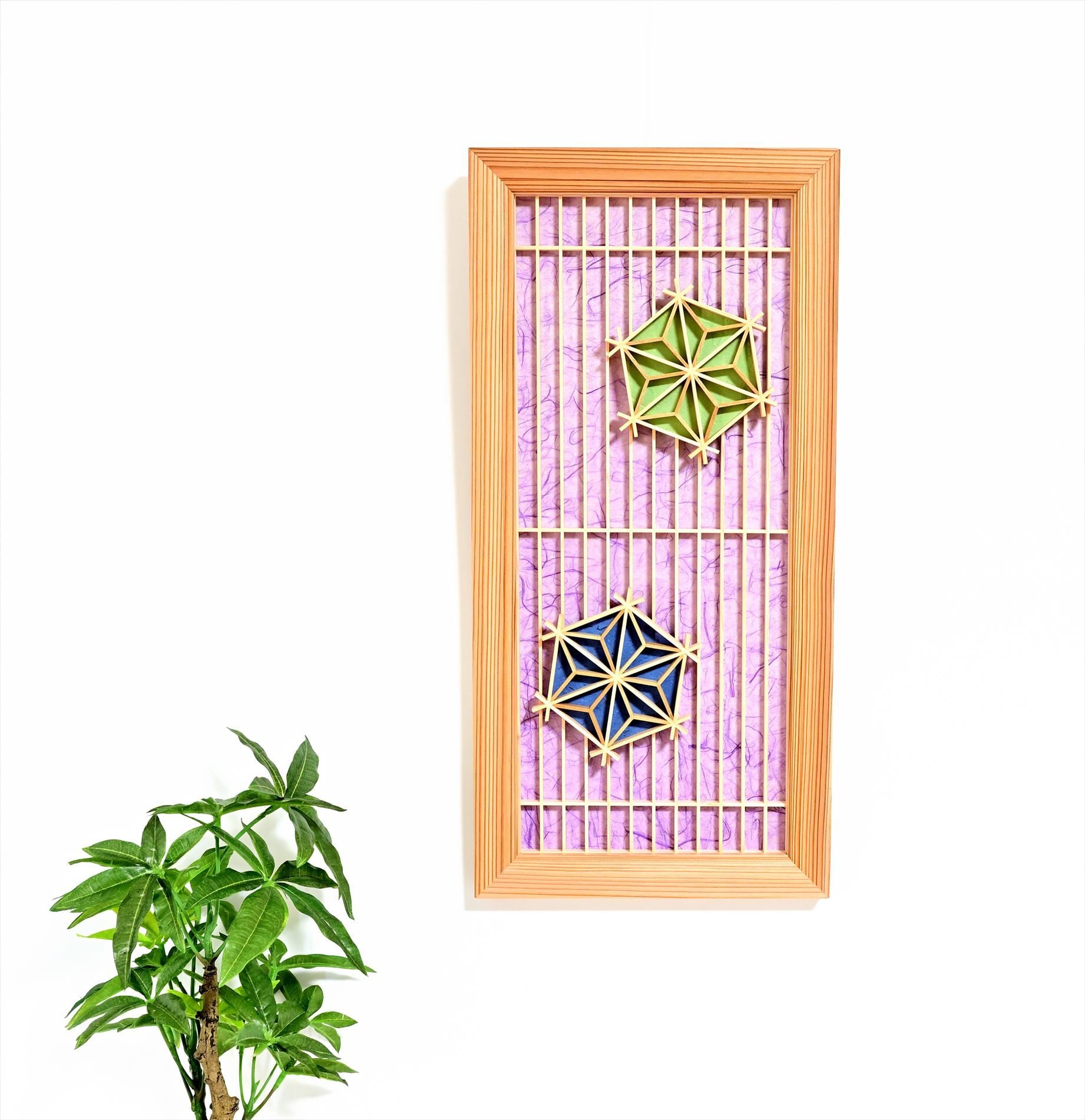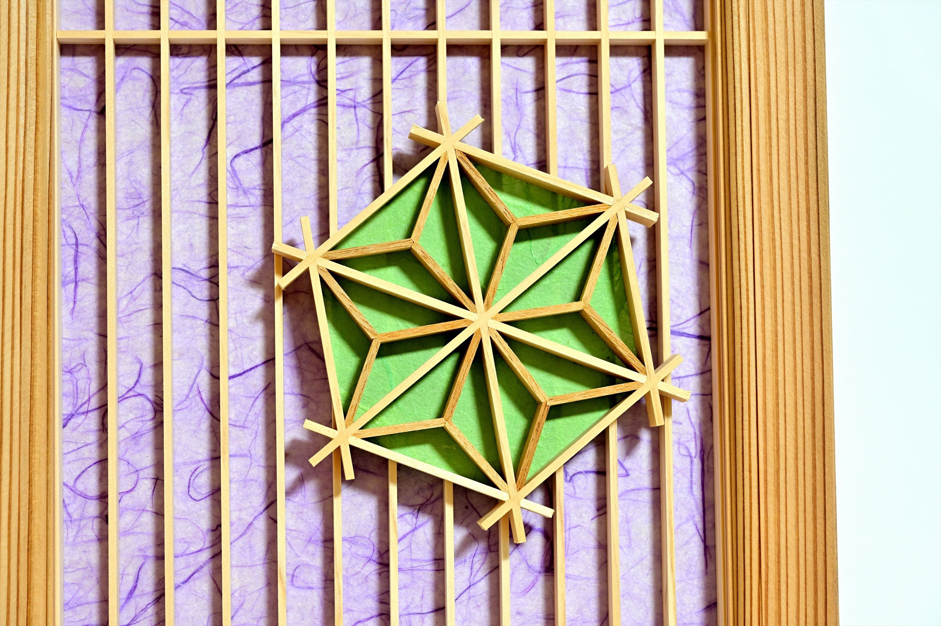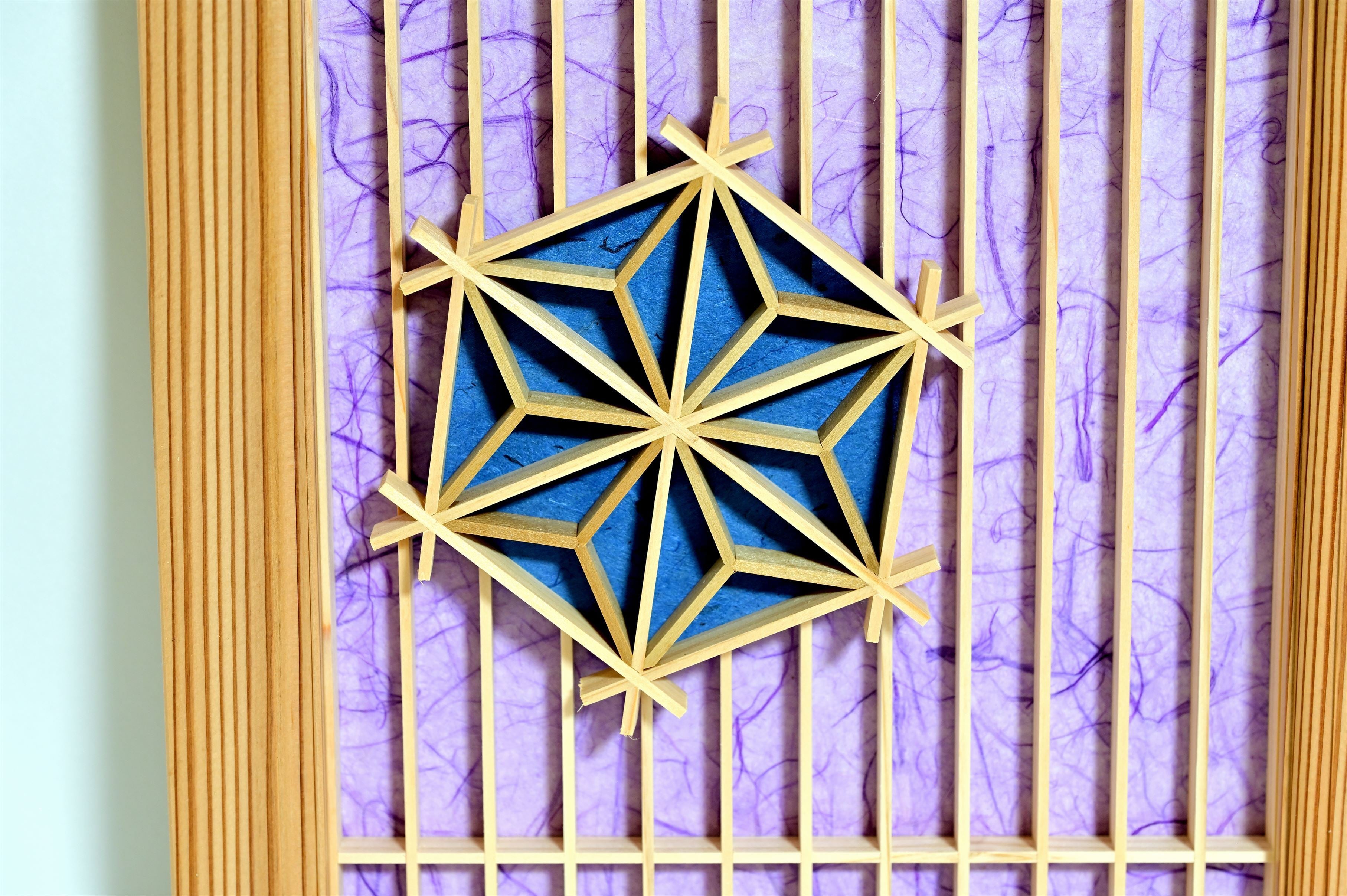 組子と和紙のウォールデコ【格子に麻の葉】