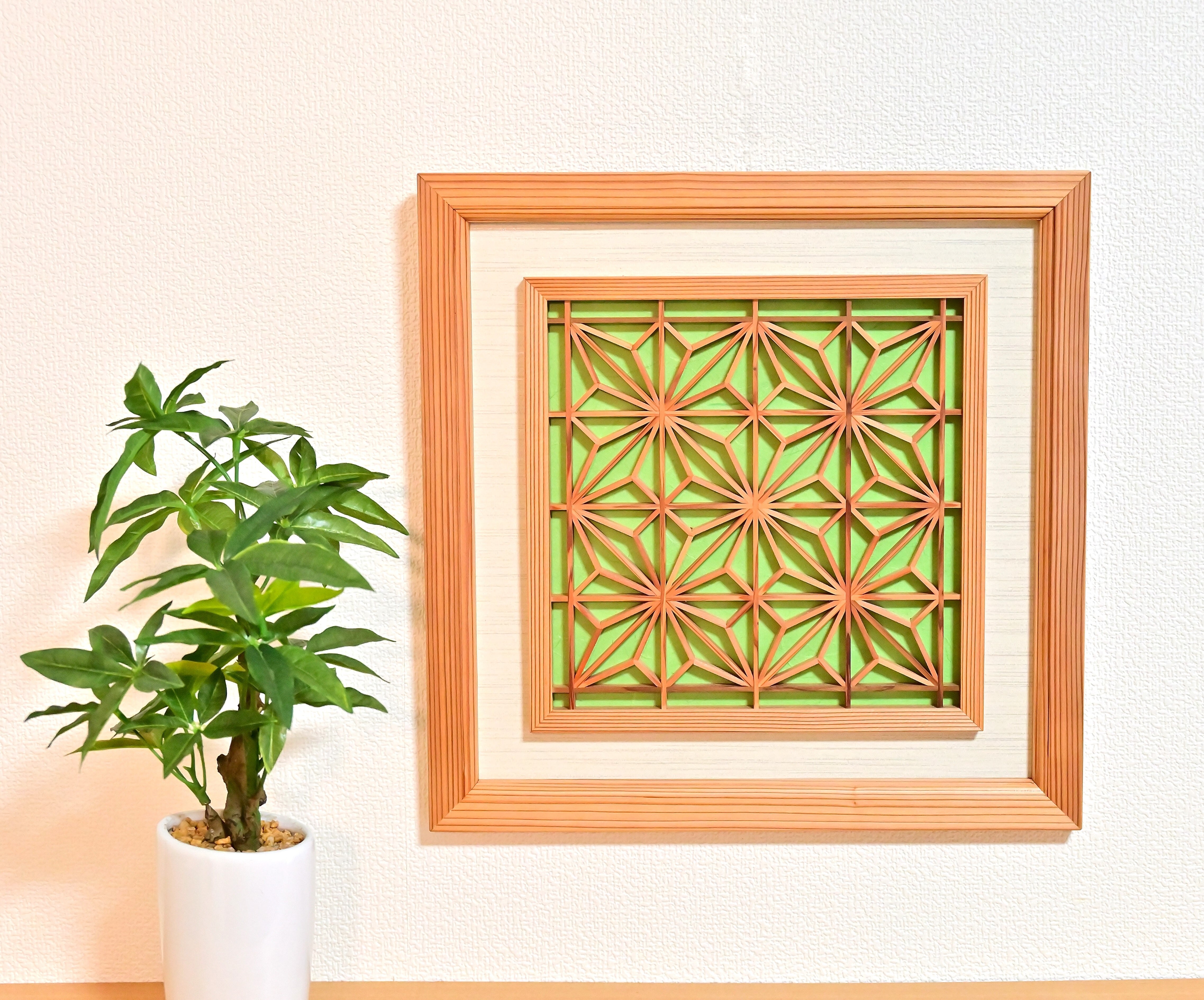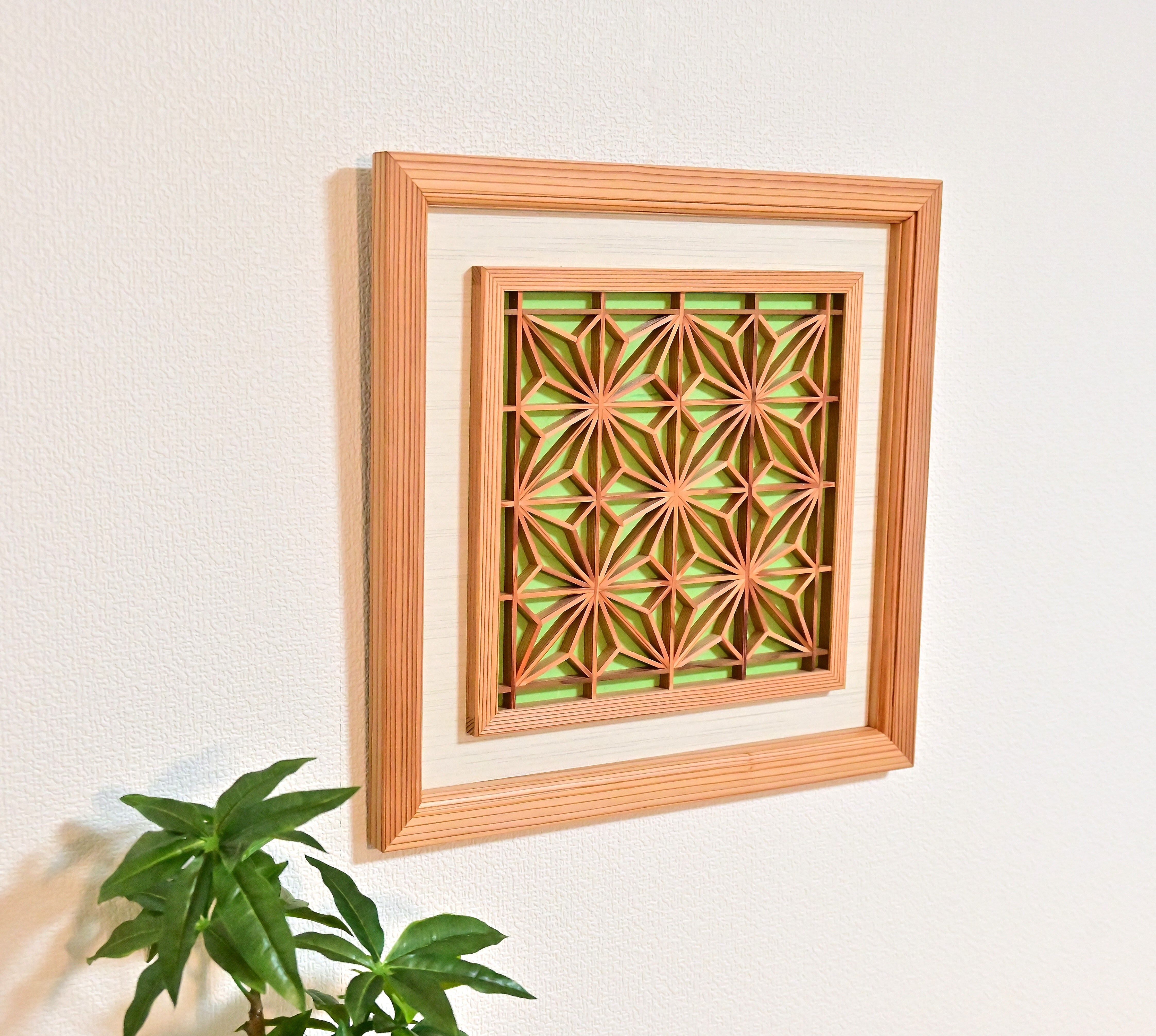 組子と和紙のウォールデコ【角麻 鶯色】